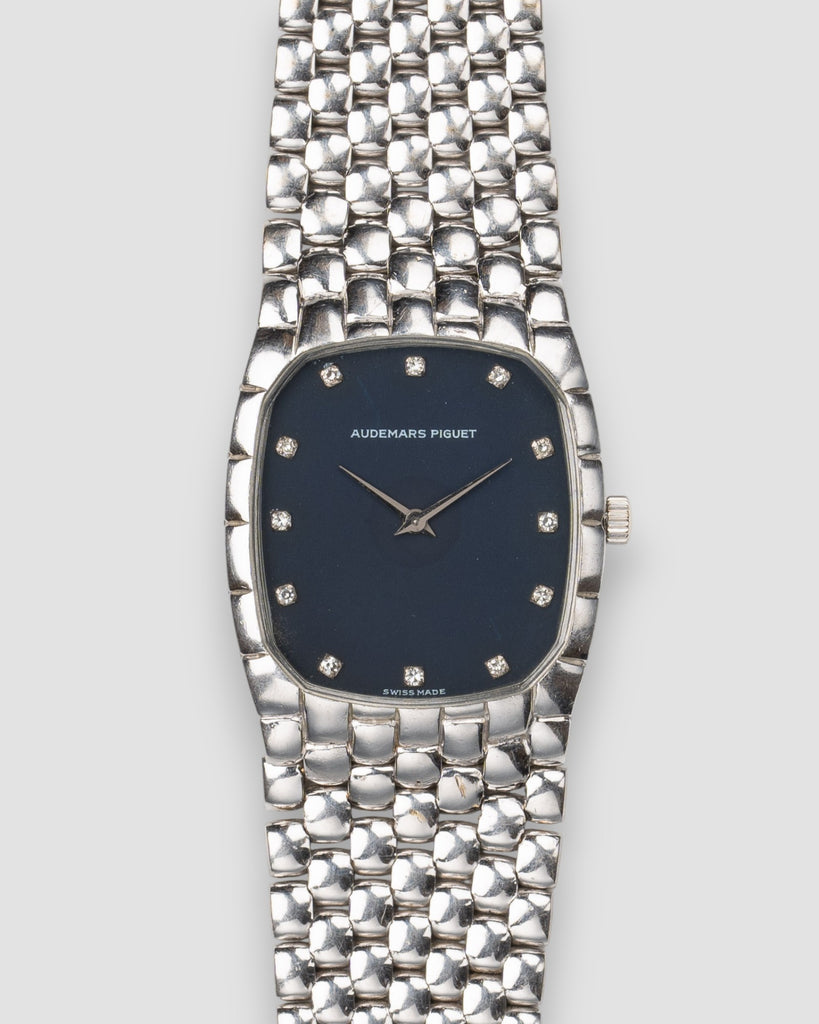 Cobra 27mm Diamond Blue Dial Pebbled Bracelet 18k WG 1980s Manual Winding