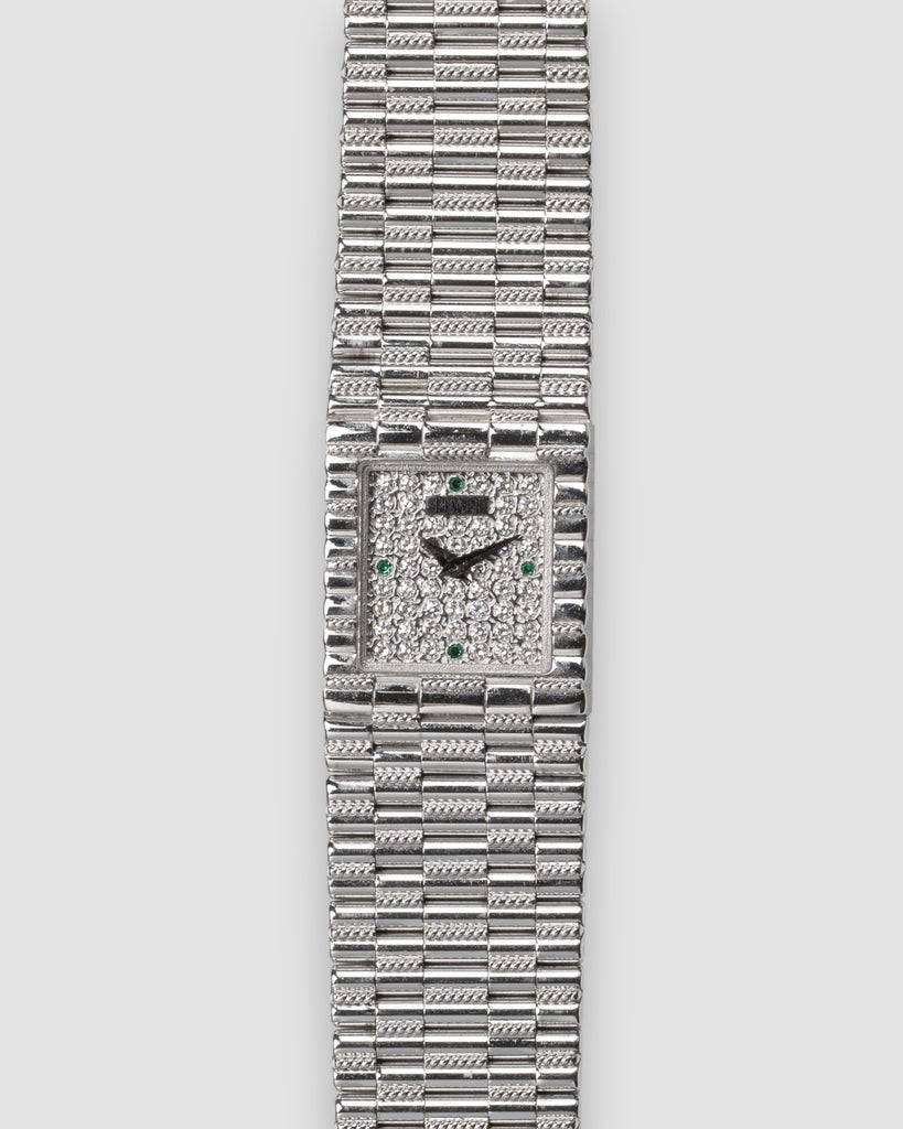 Traditional 15301 G2 Emeralds and Pave Diamond Dial 18k WG Box and Papers