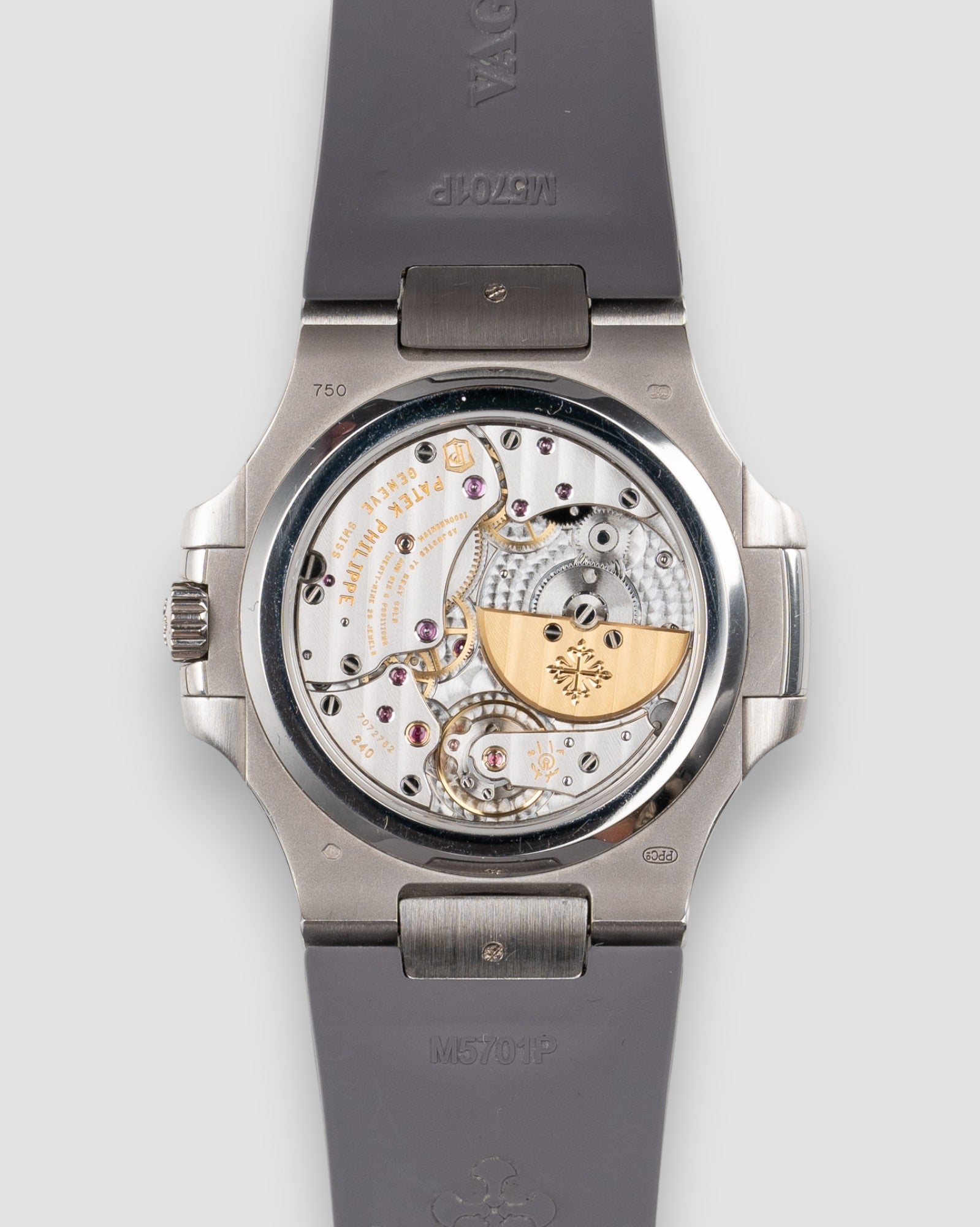 Bracelet Original Patek Philippe Leather Strap with 18k White Gold Buckle, additional gray Rubber B Strap